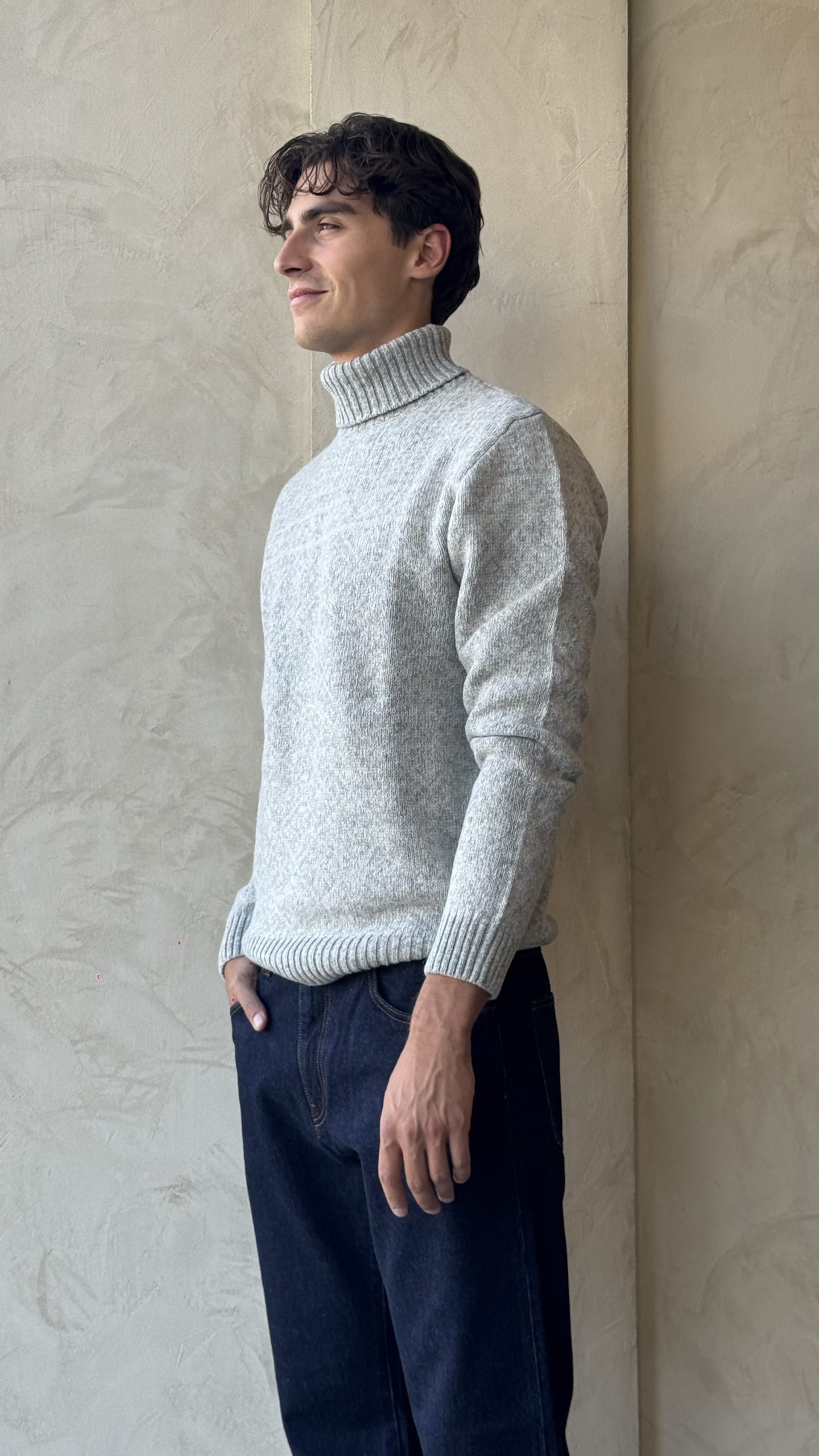Maglia basic collo alto , vestibilità regolare, rifiniture con costine .