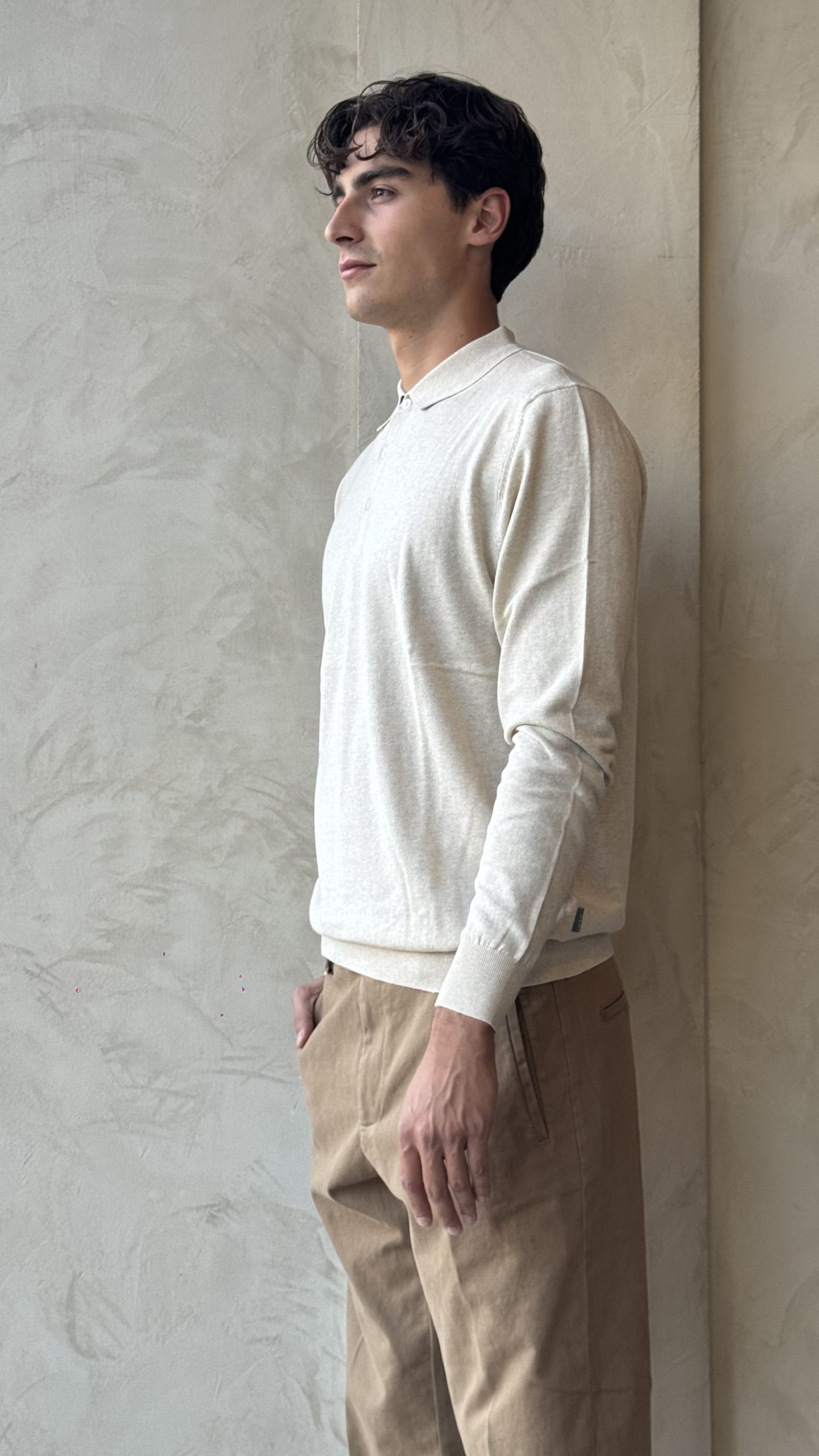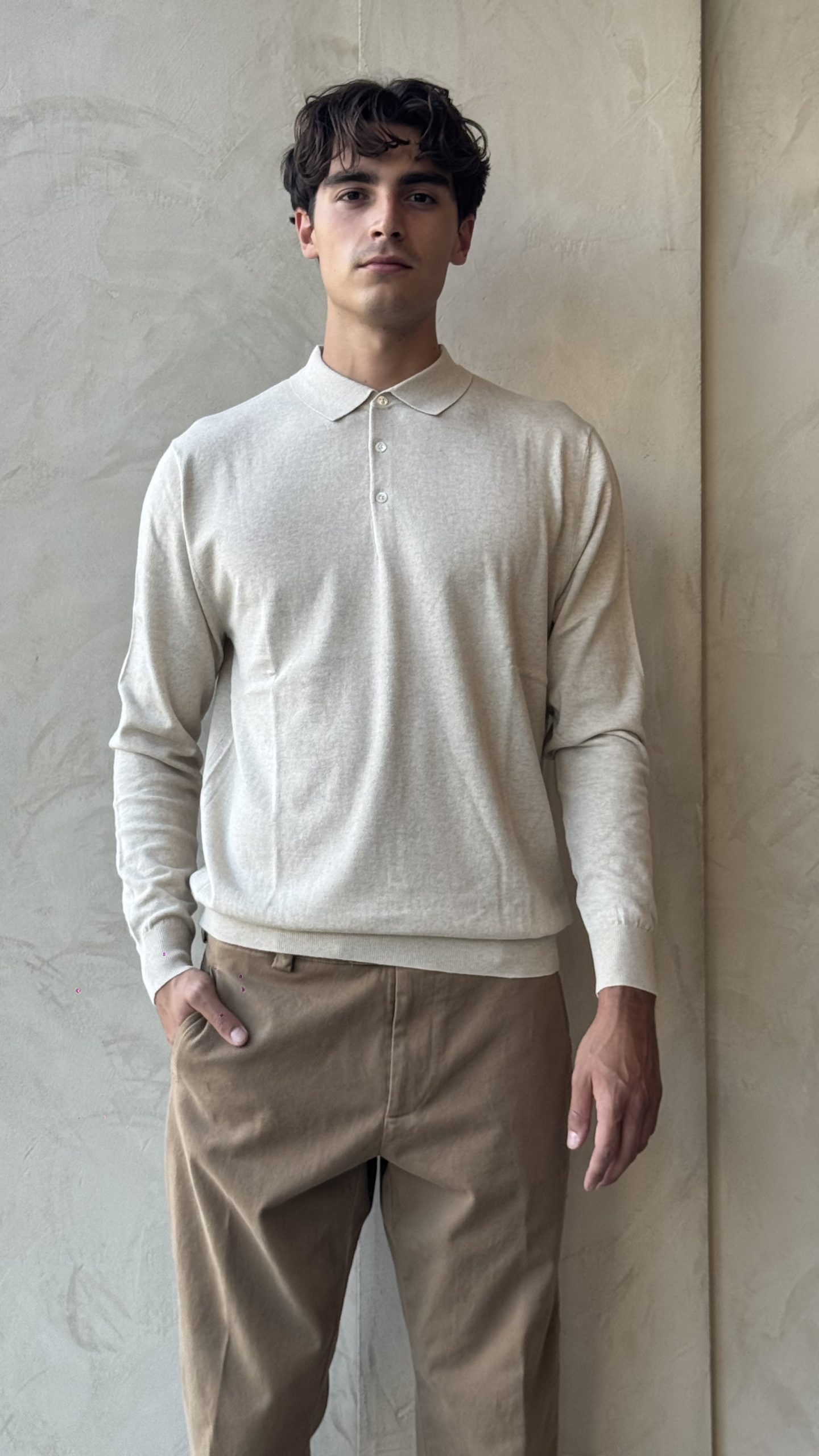 Maglia modello polo 3 bottoni e colletto, fit morbido, cotone e cashmere