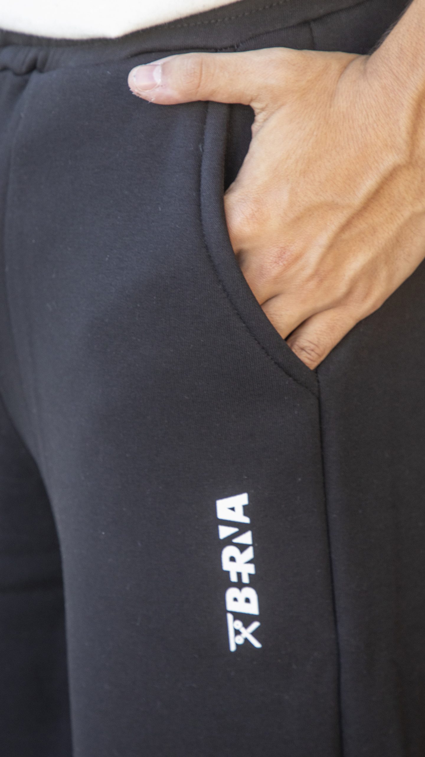 Pantalone in felpa con elastico in vita e fonda largo, vestibilità morbida, tasca sul fianco, logo stampato bianco a contrasto.