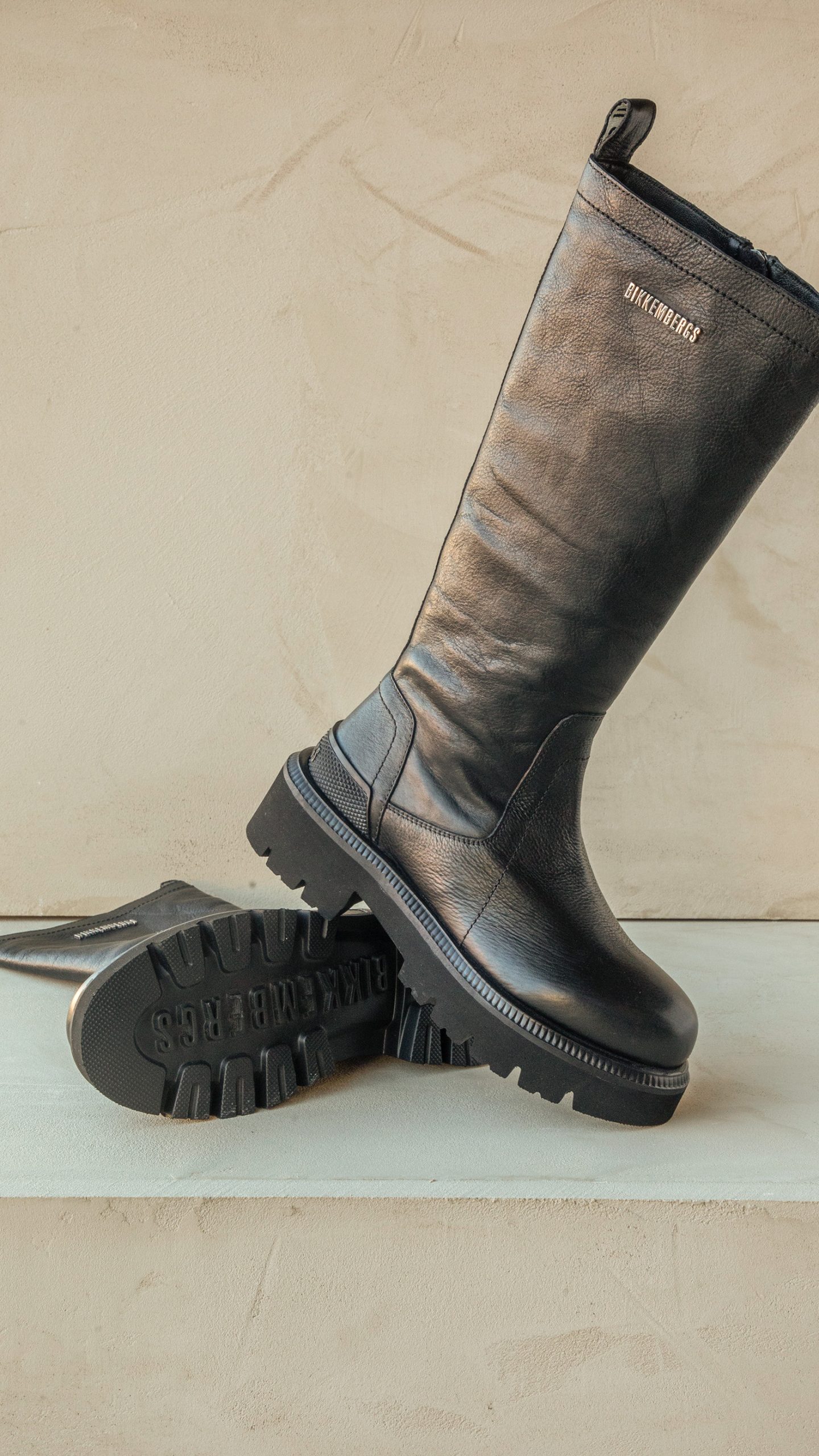 Stivale al ginocchio con zi interna, logo lato esterno in metallo, punta rotonda e suola in gomma rialzata per garantirne il massimo comfort.