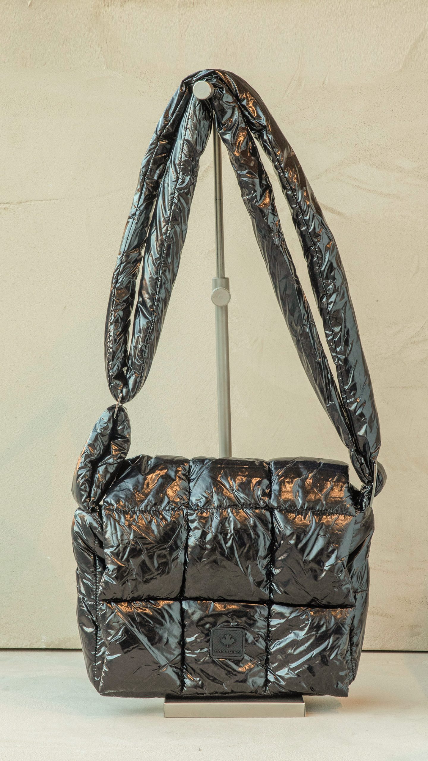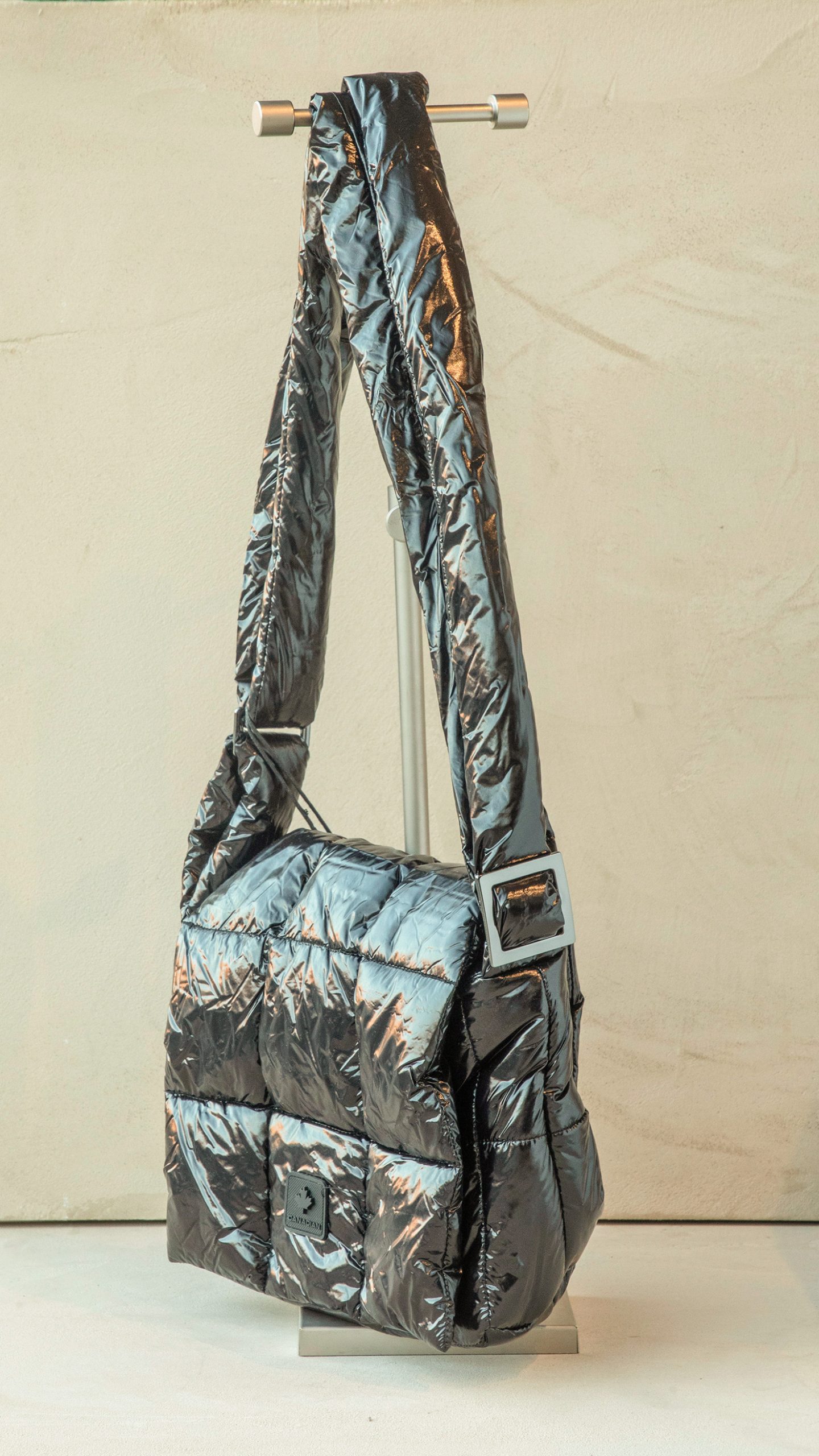 Borsa a spalla e a tracolla in poliestere recicilato lucido