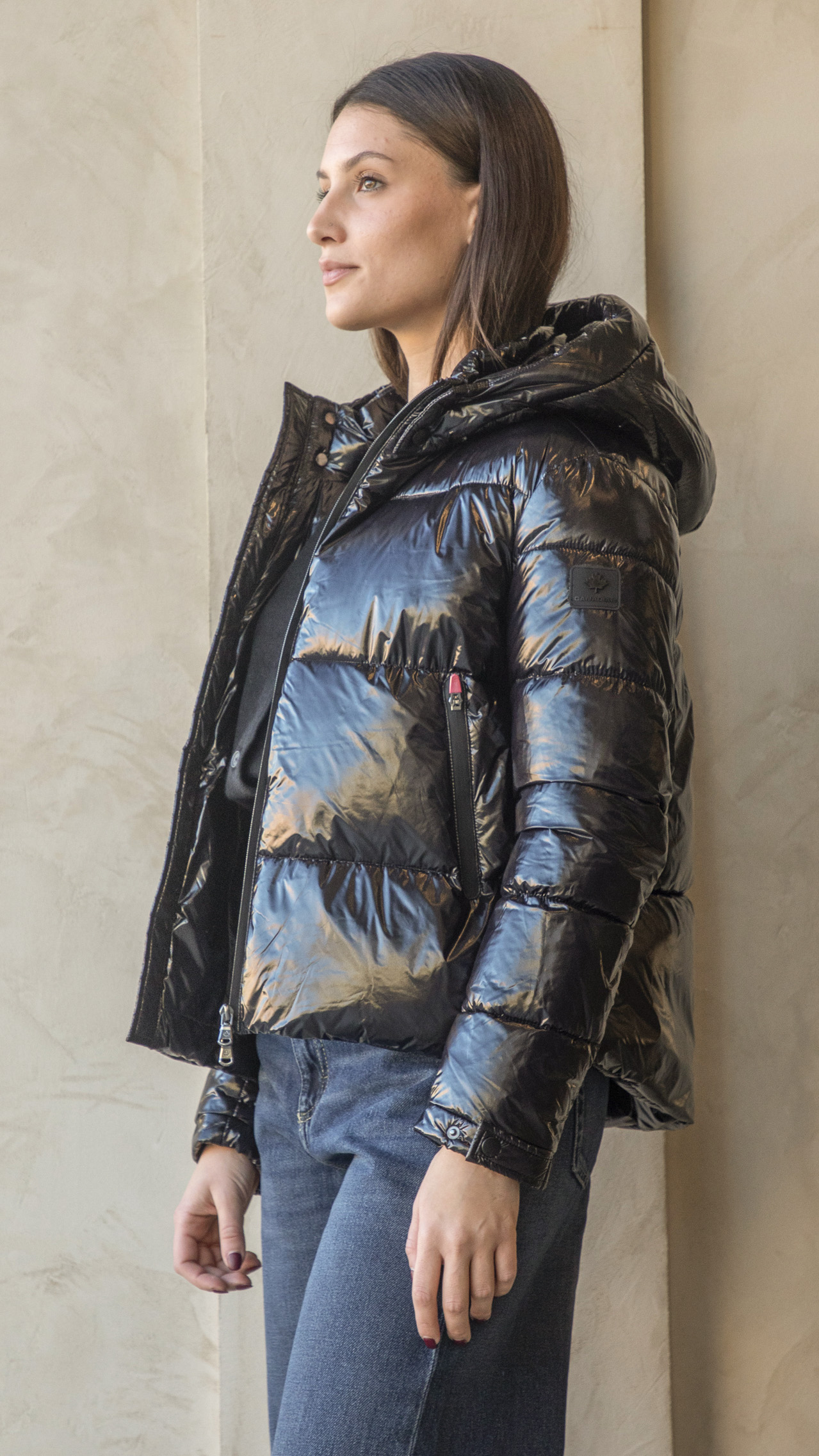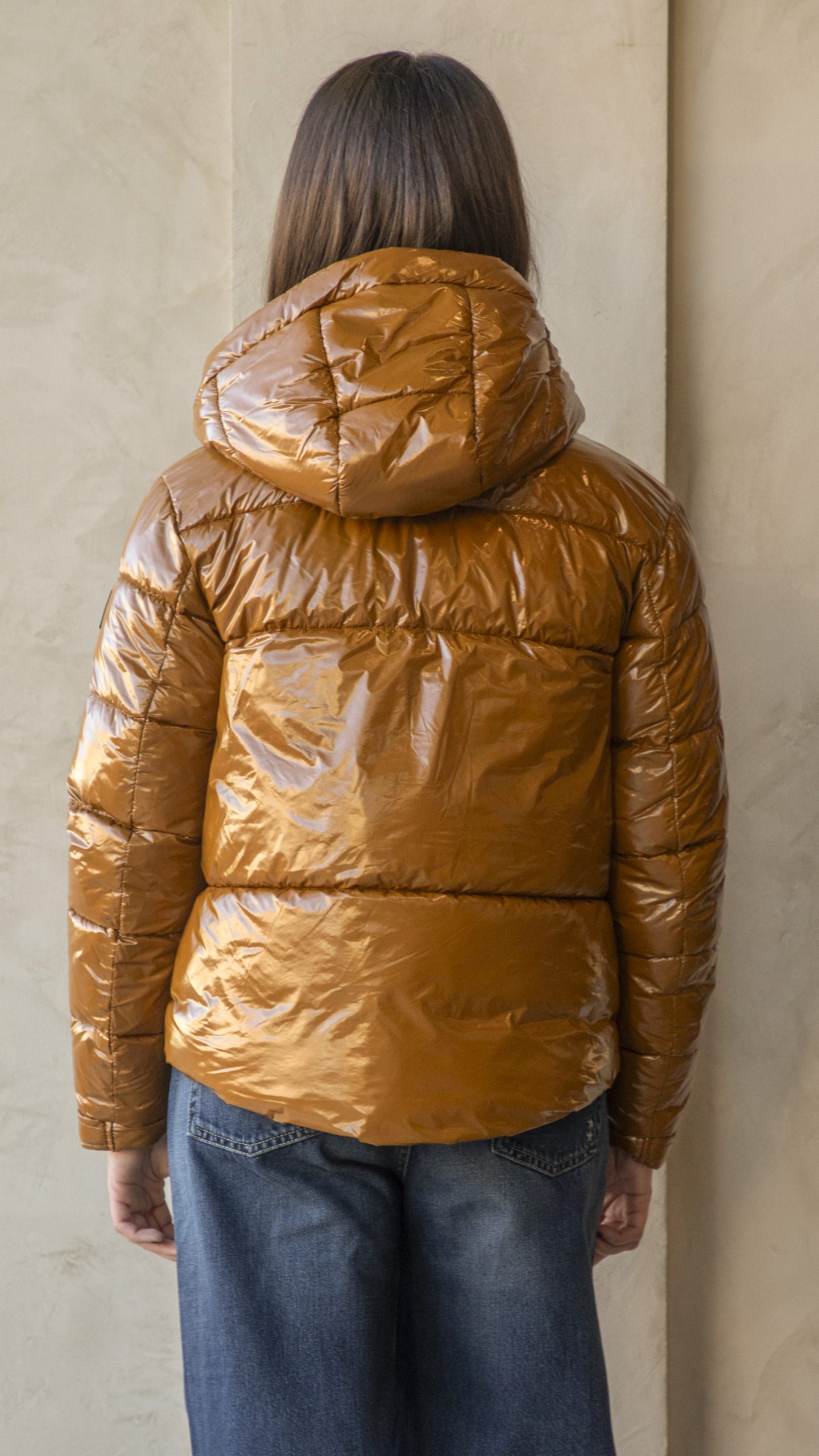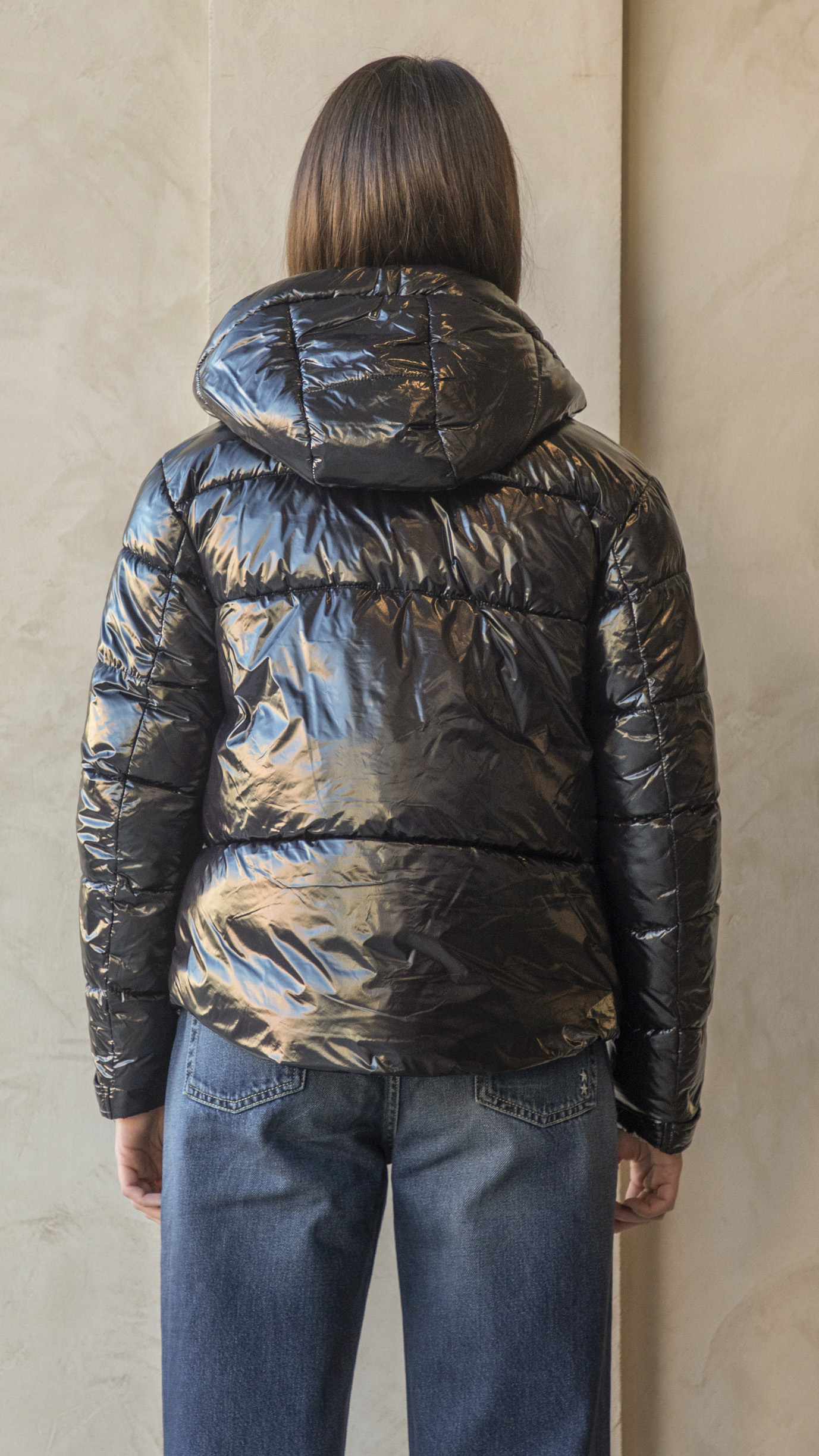 Realizzato in tessuto Recycled Glossy, con imbottitura Repreve (fibra riciclate ad altissima perfermance). Imbottitura in nylon super calda e leggera, chiusura con zip a doppio cursore e cuciture termosaldate, cappuccio rimovibile con cerniera. Vestibbilità regolare.
