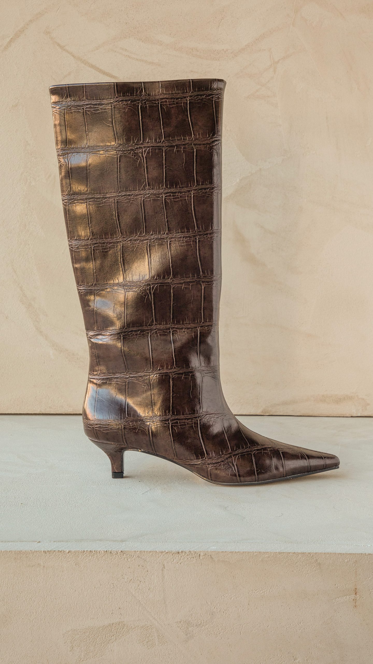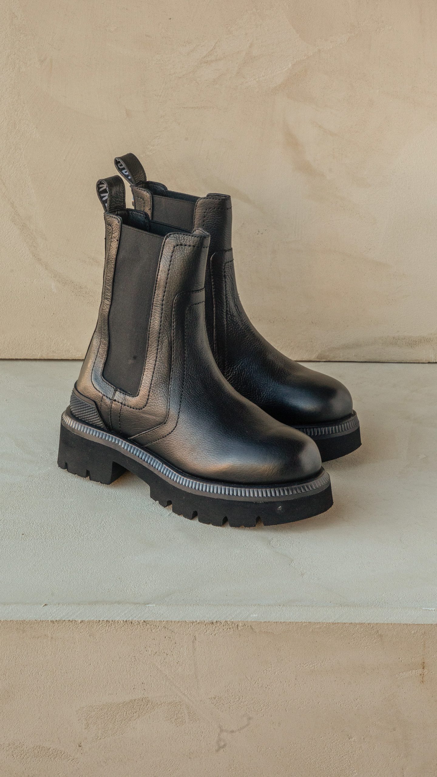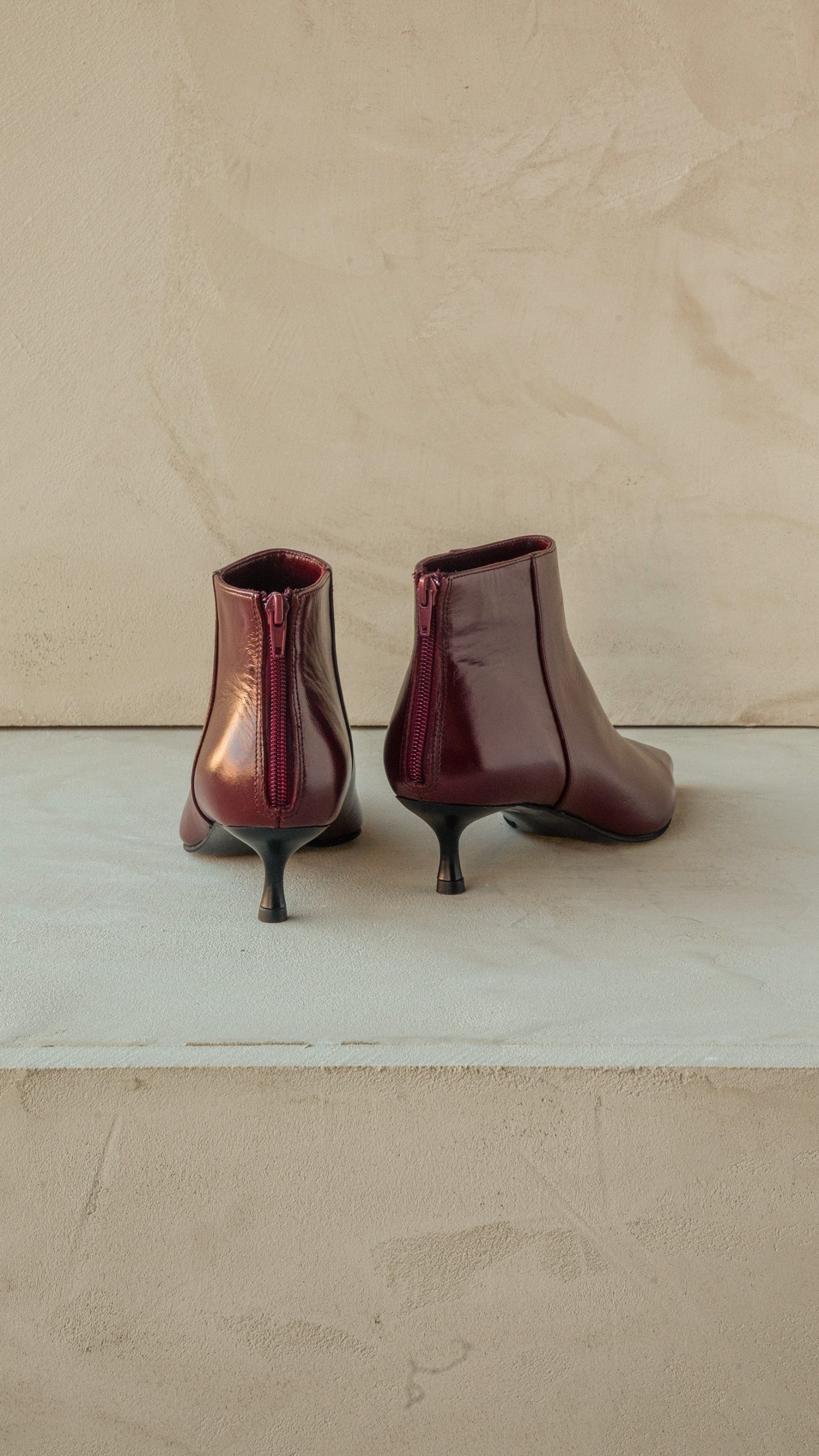 Tronchetto in pelle con chiusura a zip sul retro, altezza tacco 5 cm.