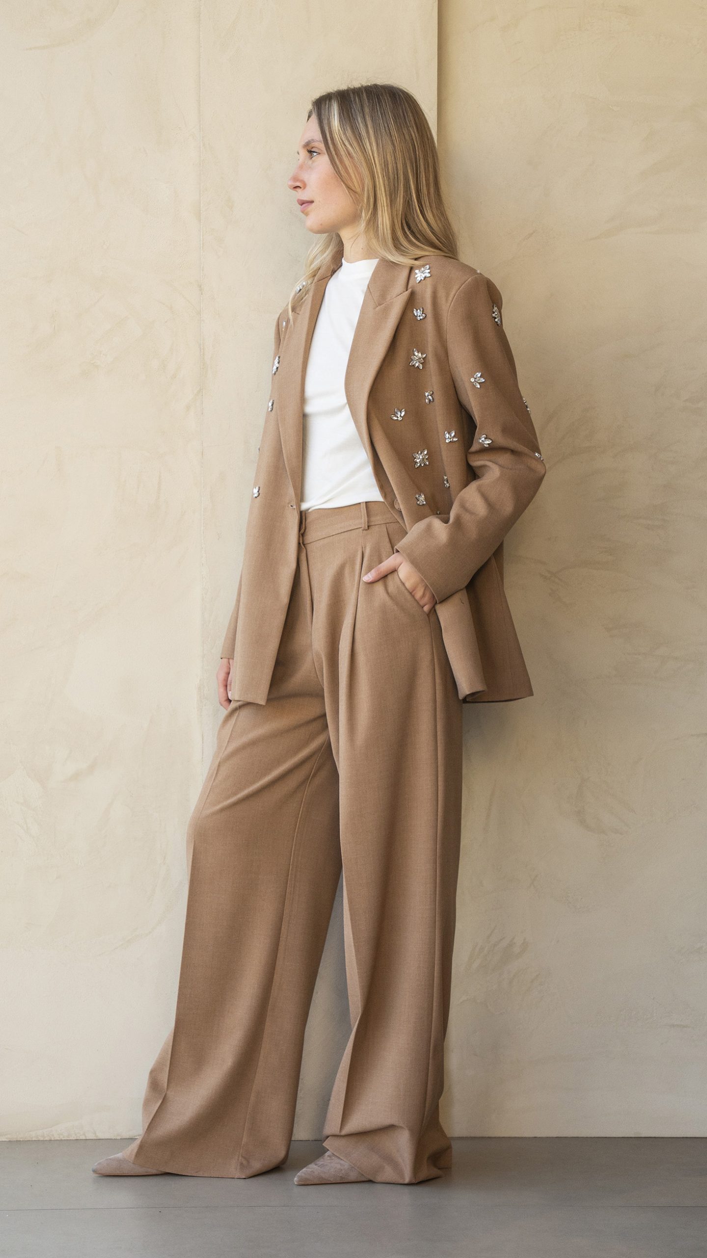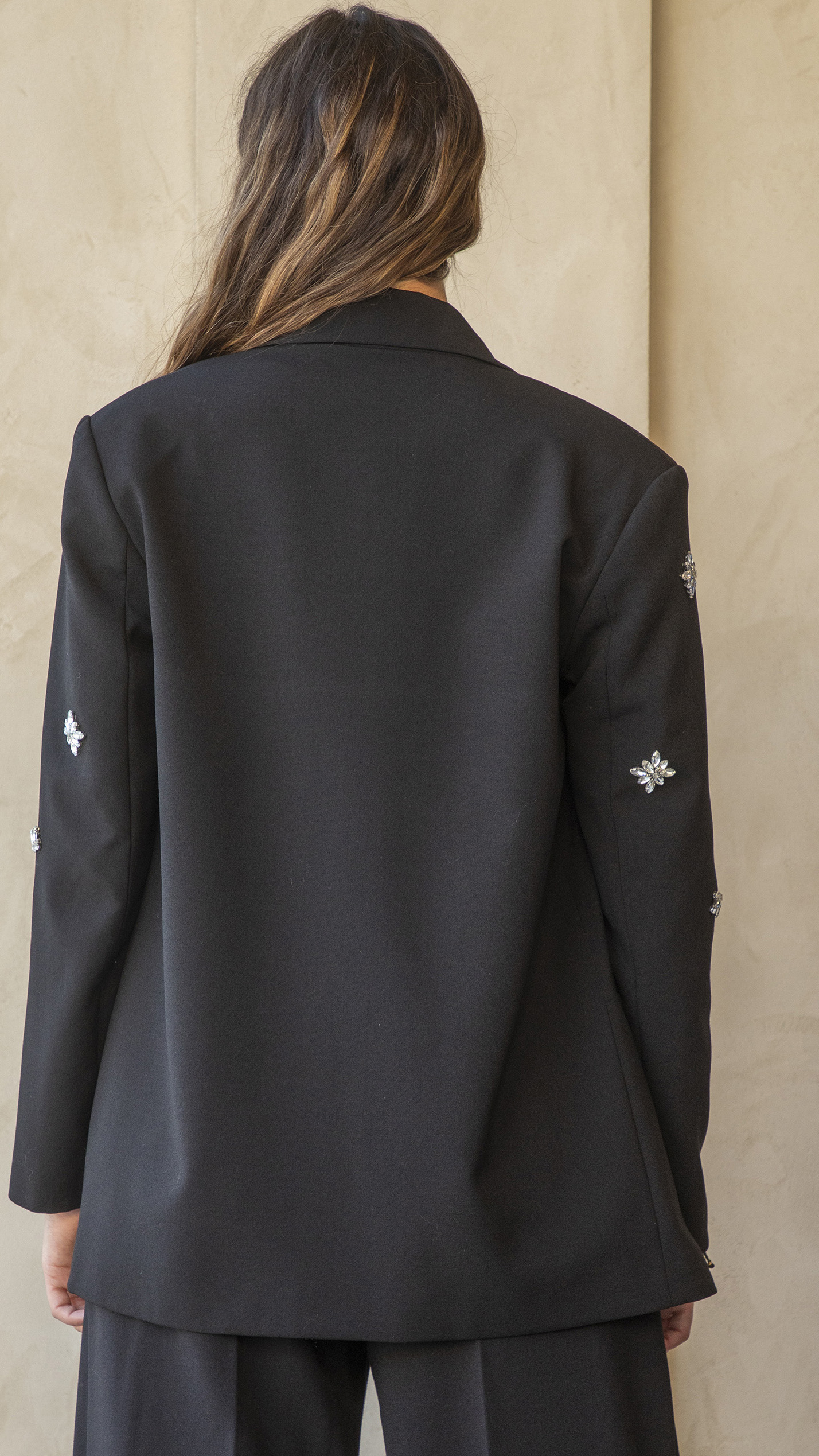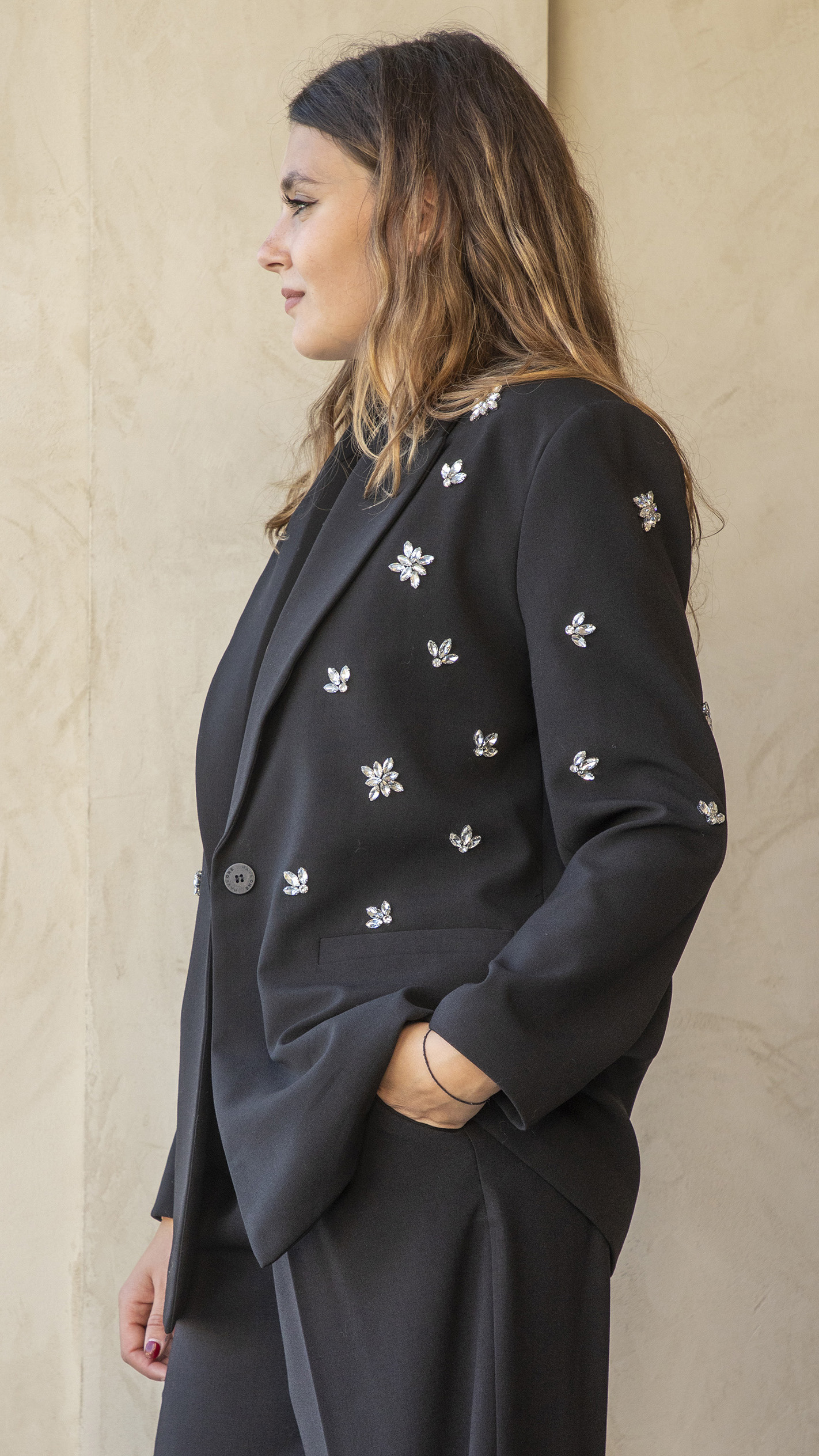 Giacca modello over un bottone con applicazioni pietre davanti, foderato.
