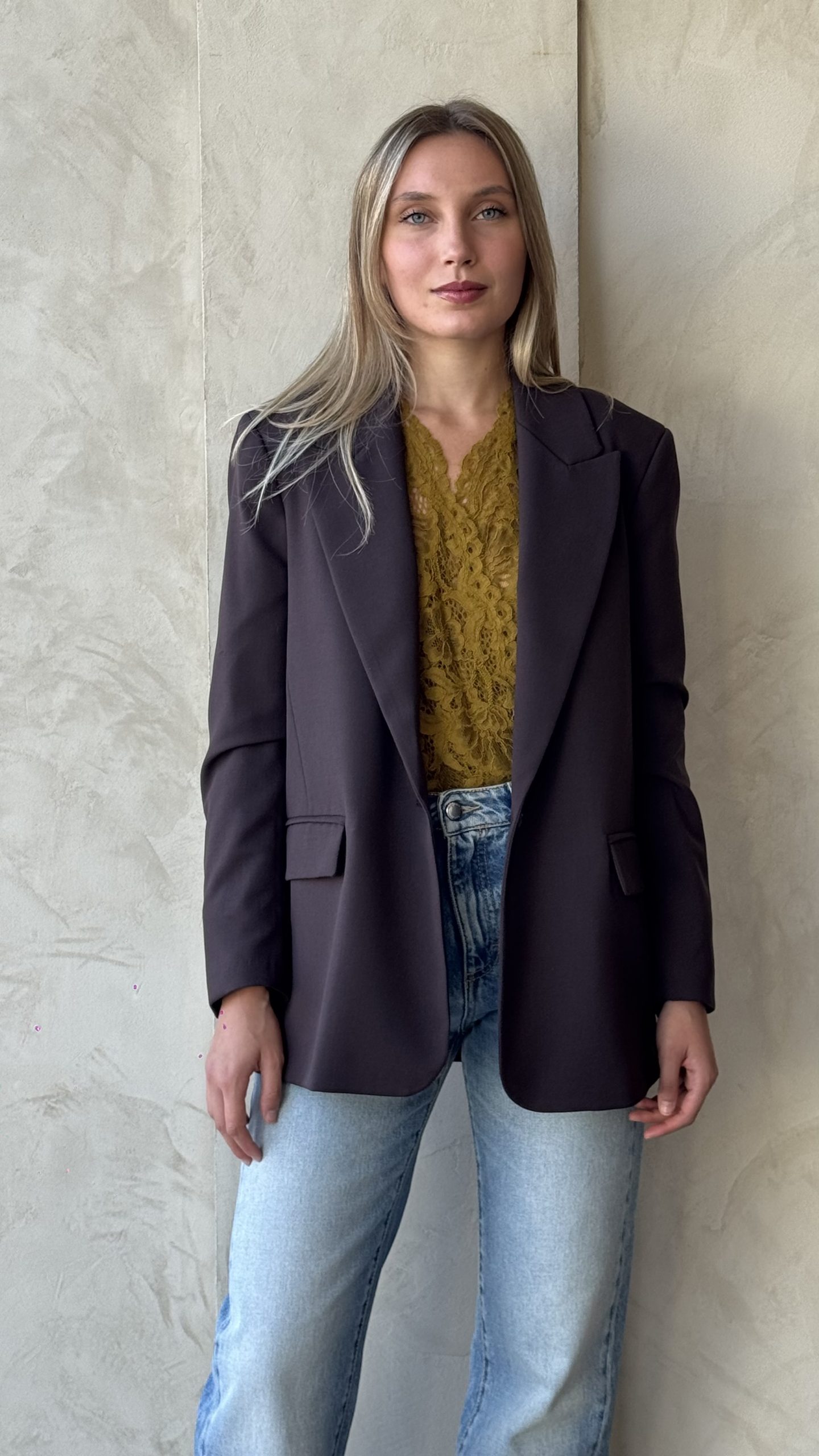 Giacca monopetto over, taglio uomo, due tasche davanti, taschino sul petto