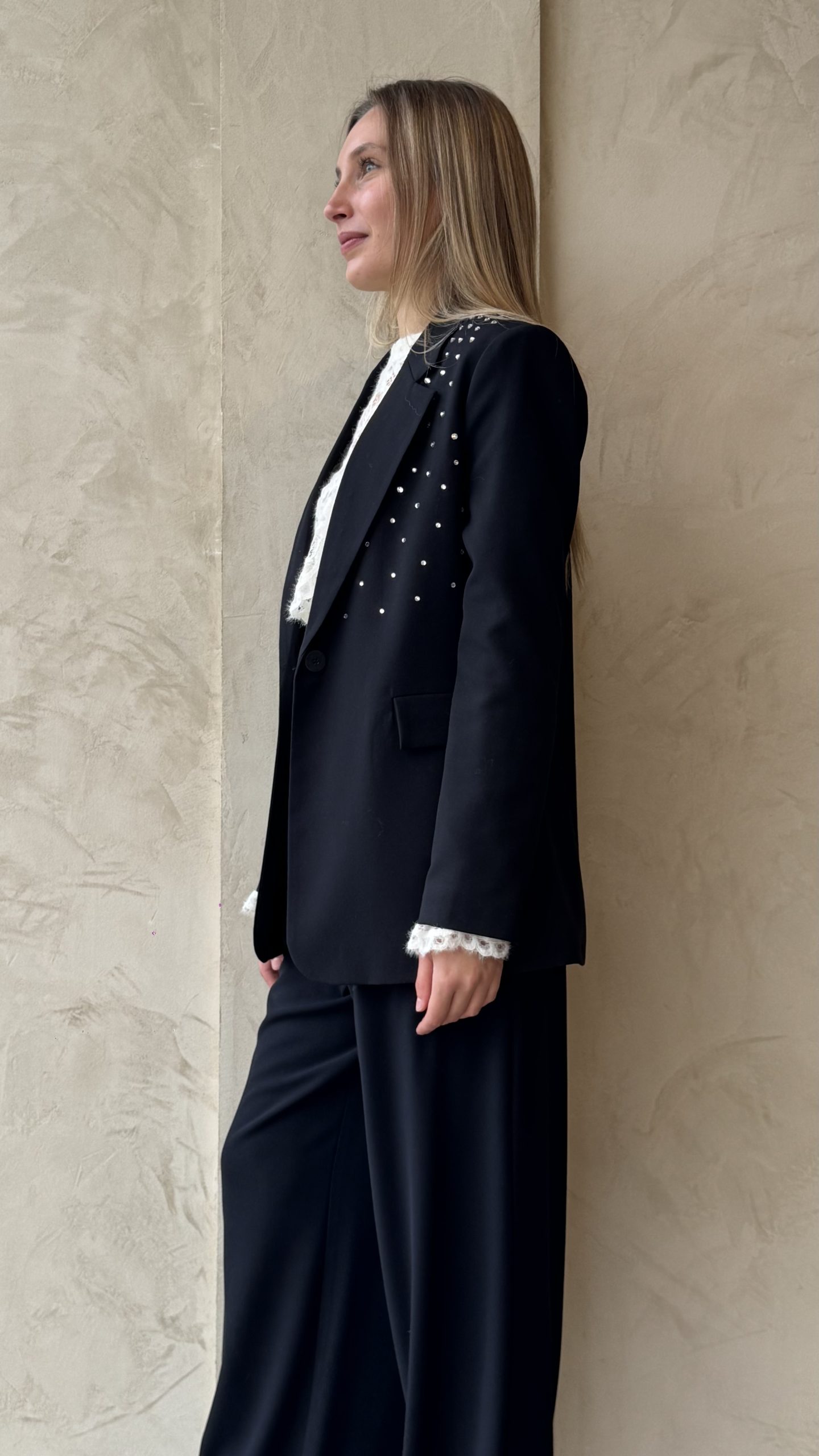Giacca strass vestibilità avvitata, applicazione di strass sulla parte superiore