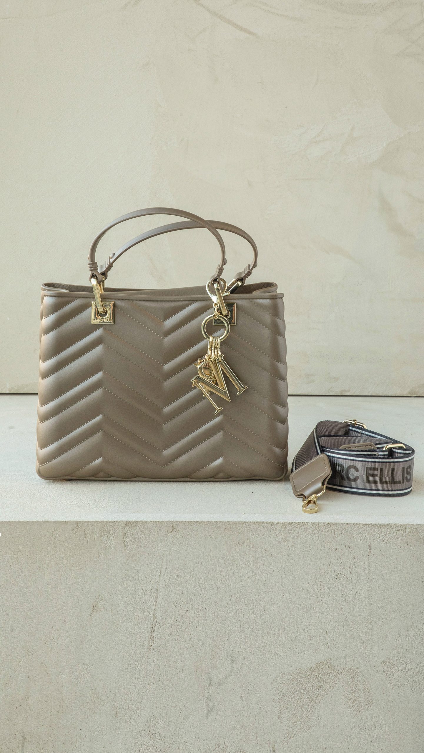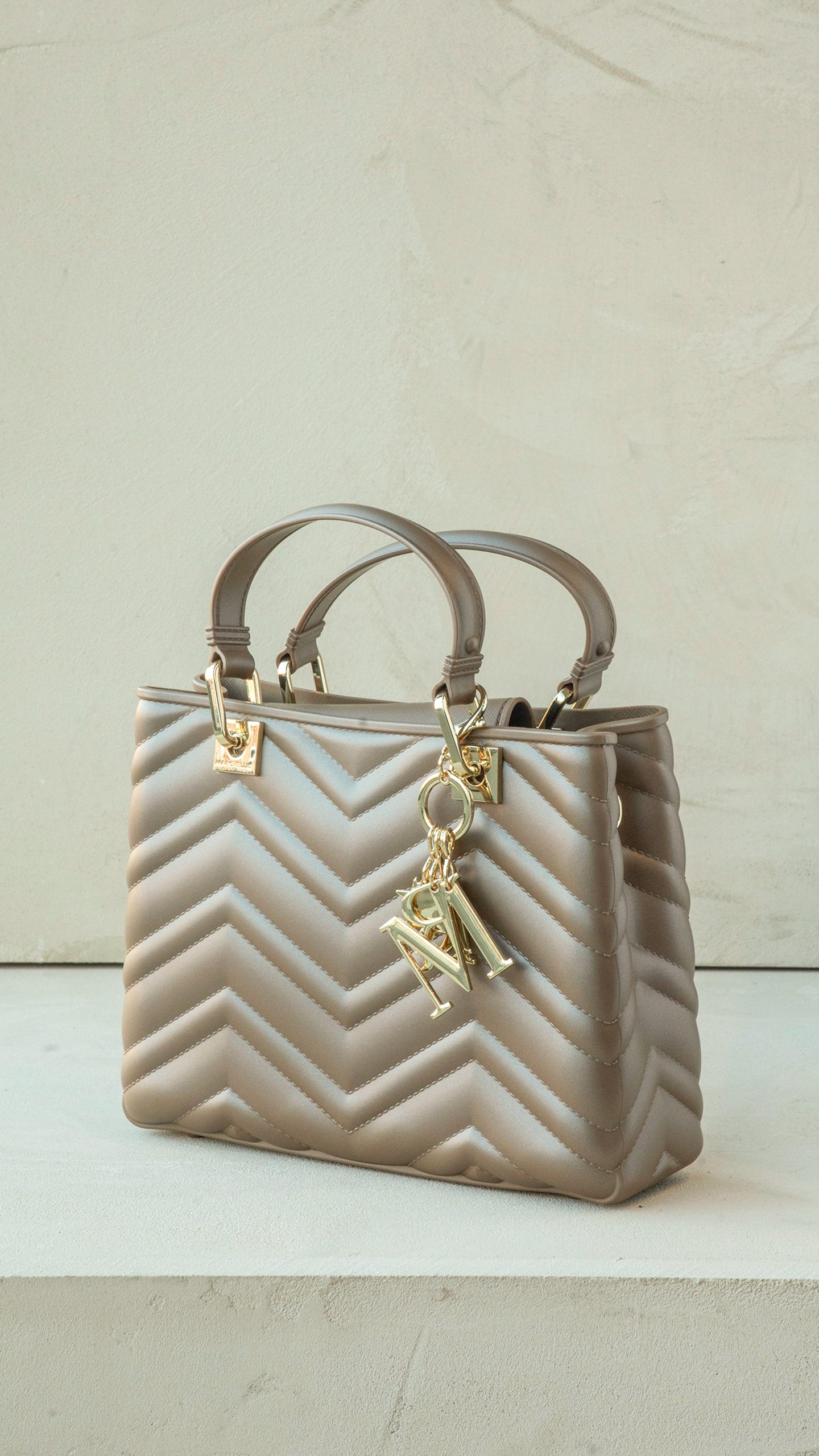 Borsa piccola shopper a mano o con tracolla in tessuto con logo, suddivisa in due scompartimenti interni