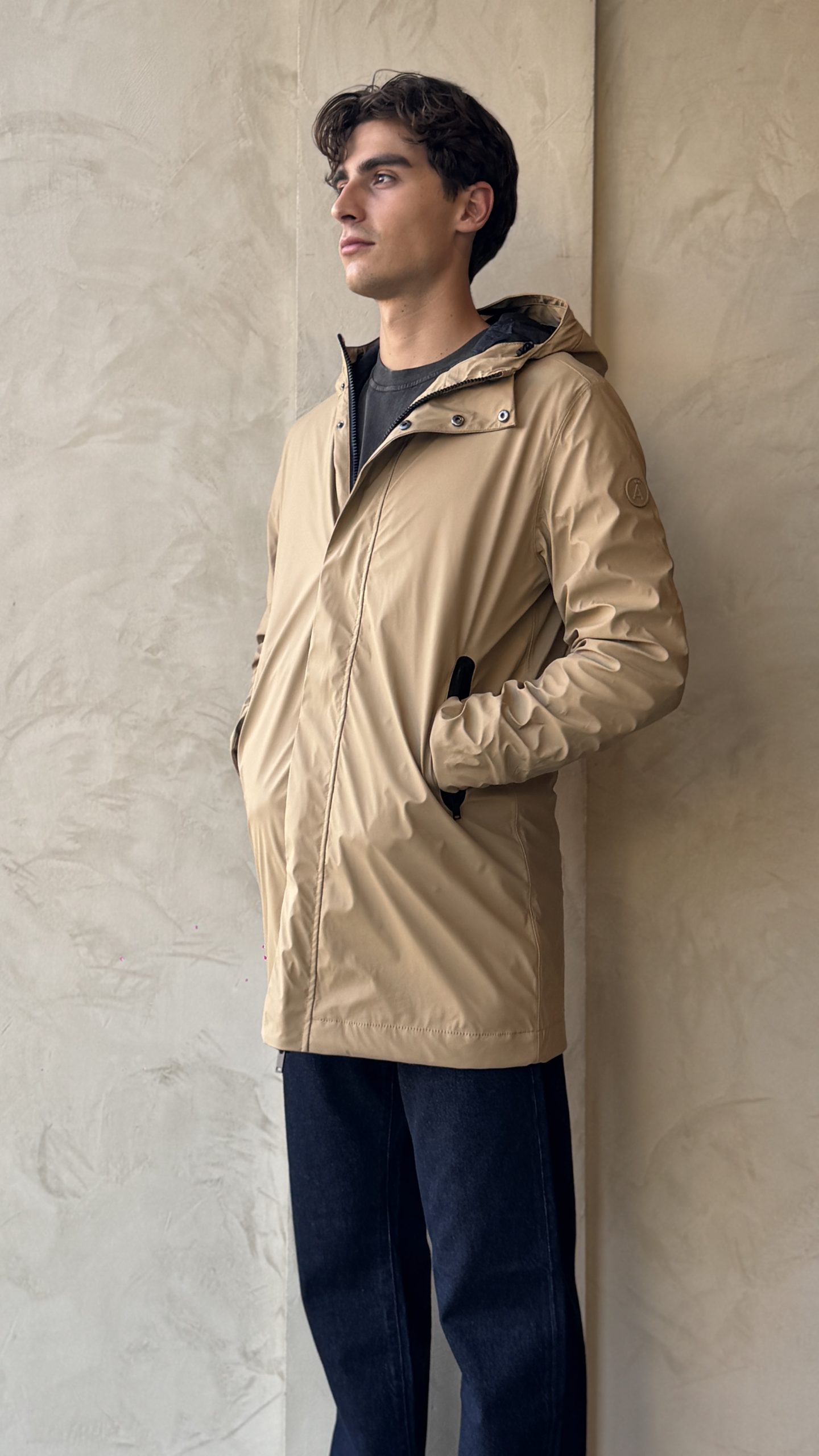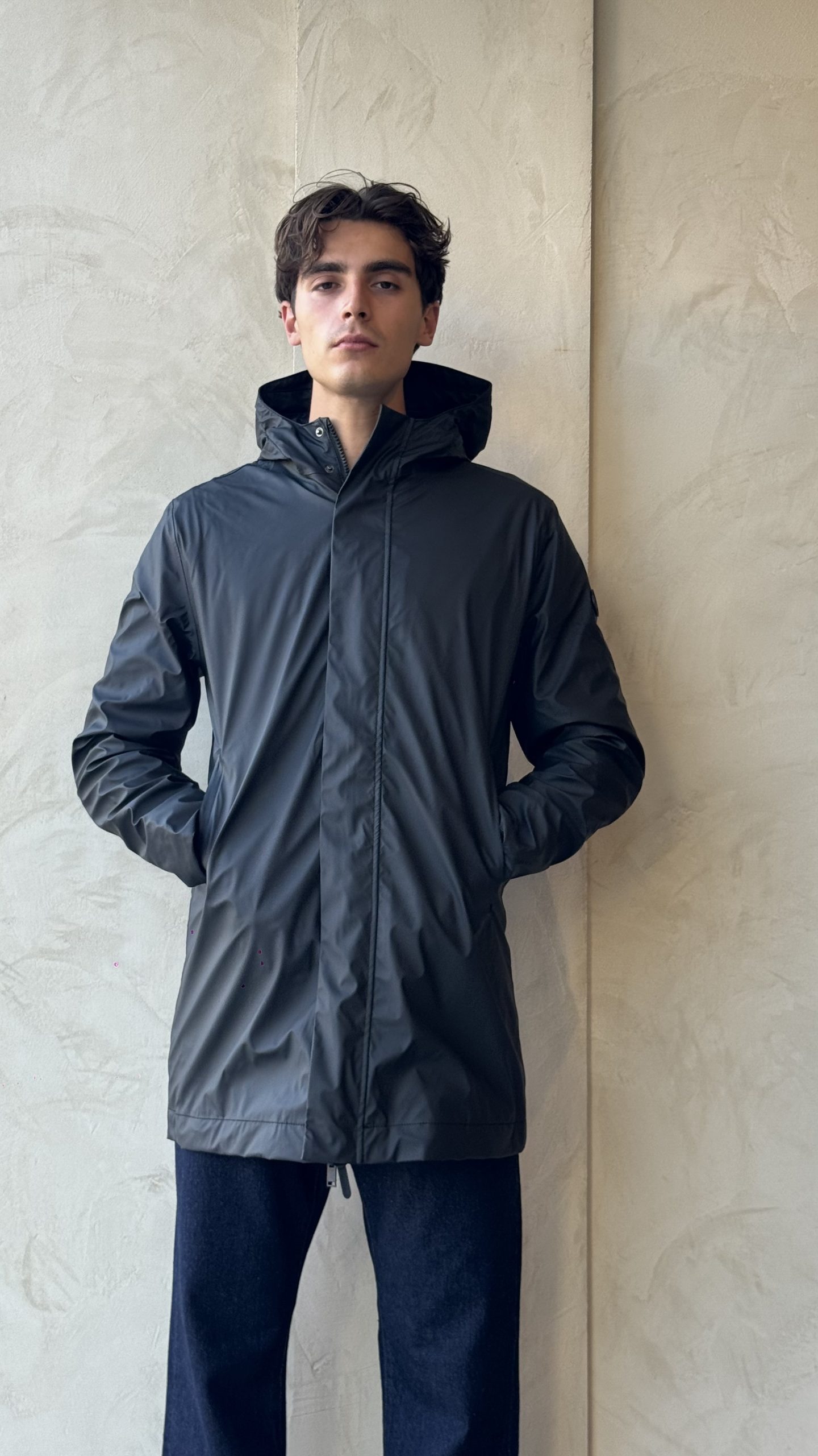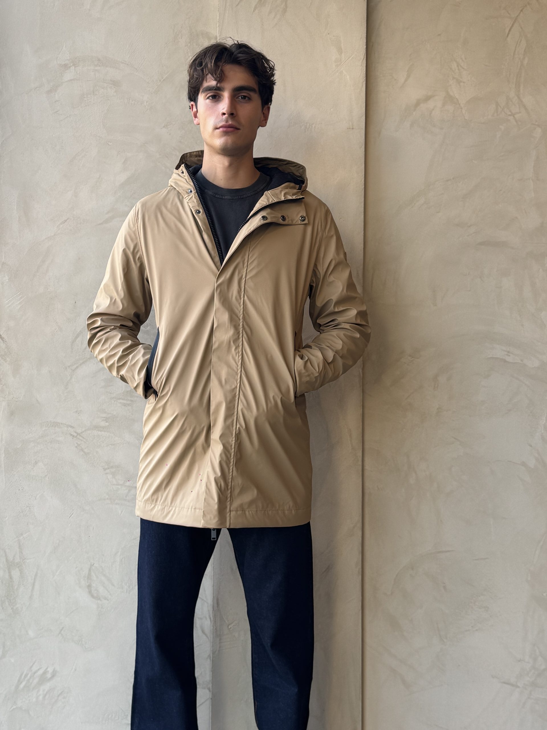 l cappotto Monetine unisce stile e funzionalità, realizzato con un rivestimento esterno in PU impermeabile al 100% (colonna d’acqua 5000 mm) e un’imbottitura isolante leggera, senza piuma e traspirante. Le cuciture termosaldate offrono una protezione superiore, mentre la cerniera frontale in resina a doppio cursore, i bottoni automatici nascosti sulla patta e le nostre esclusive tasche impermeabili.