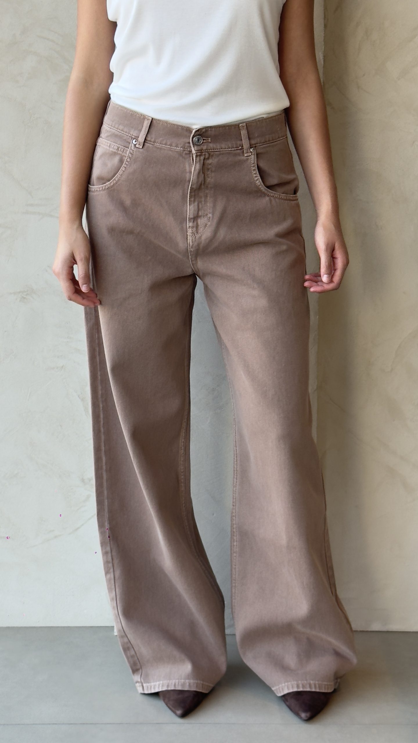Pantalone in denim bull phard, baggy fit, mid rise, wide leg, cinque tasche, chiusura con bottone e zip