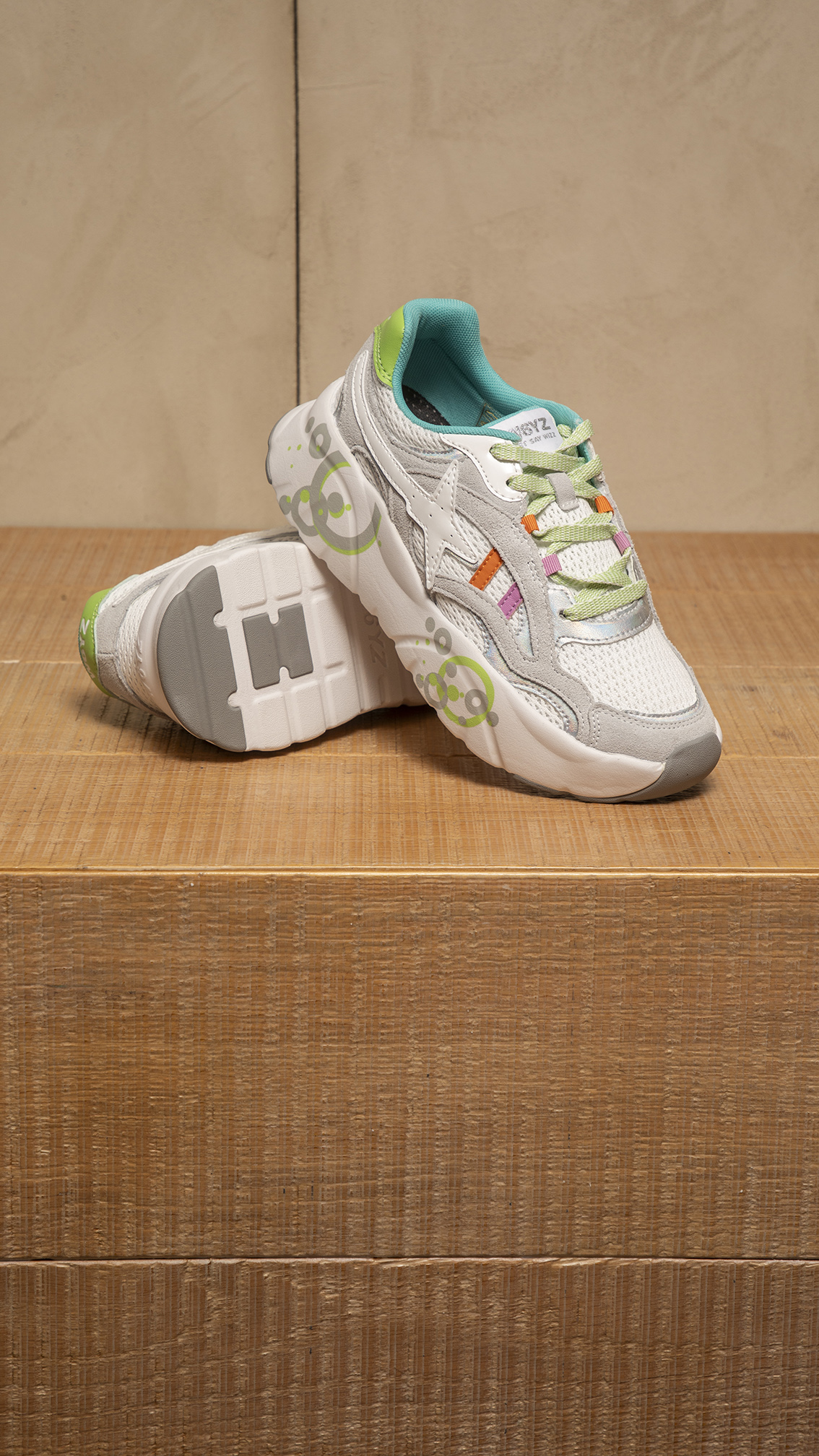 Sneakers in suede e tessuto tecnico, con fodera e soletta in tessuto. Chiusura con lacci e fondo platform in gomma ultraleggera per slancio e comodità.