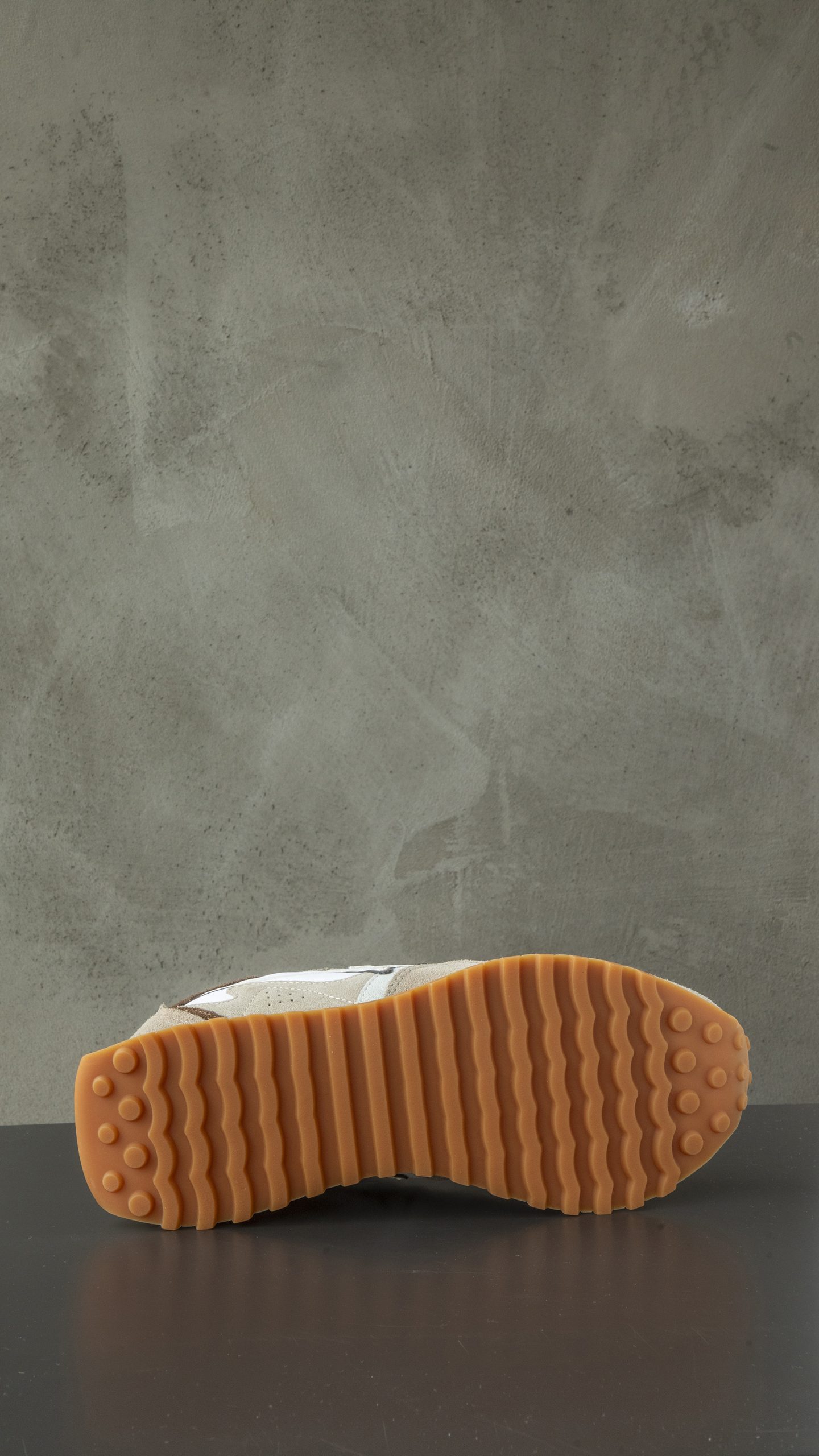 Sneakers in tessuto tecnico e suede con suola in gomma e fondo dentellato a contrasto